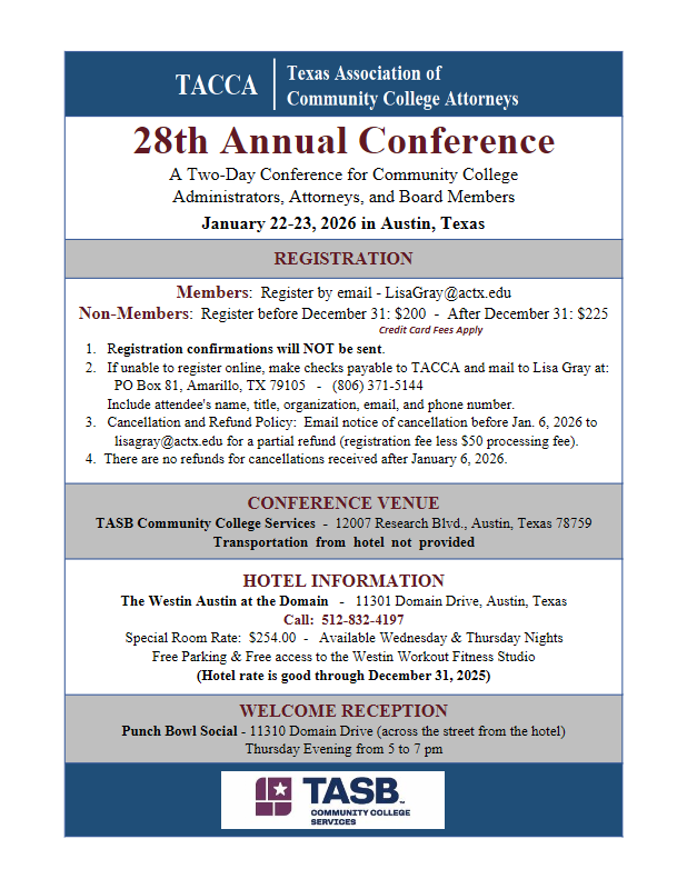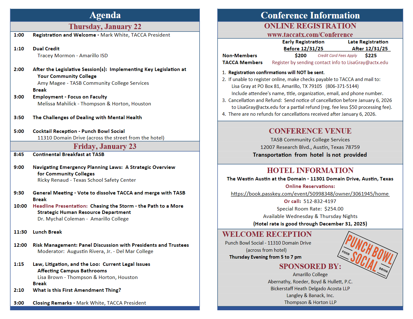 TACCAP.O. Box 81Amarillo, TX 79105Non-Members $225* Please include attendee name, job title and name of firm with payment.